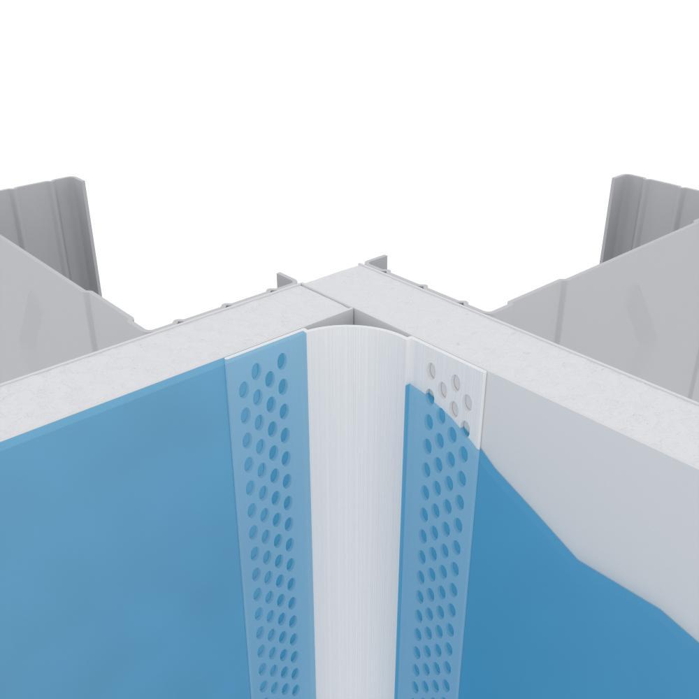 Perforated flanges accept joint compound or veneer plaster for a flush finish.