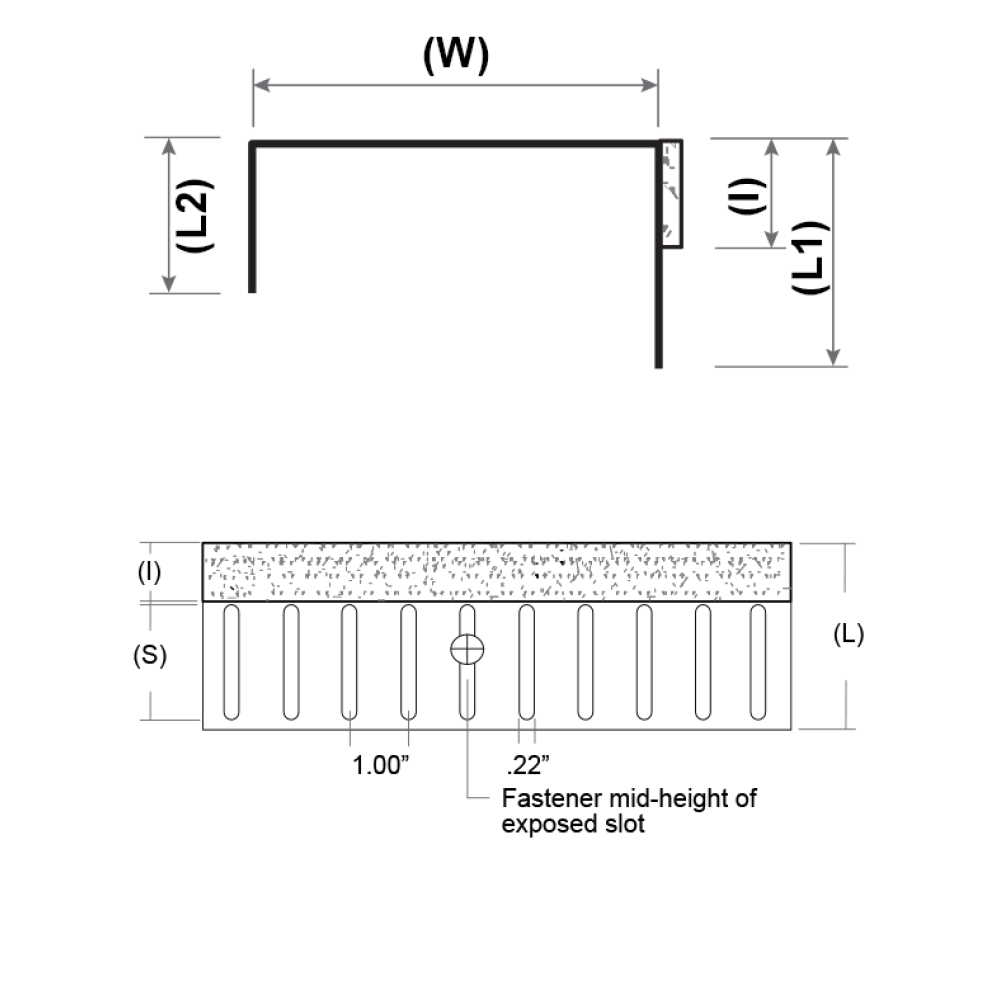 Vertical slots: 0.22" wide & spaced every 1" o.c.