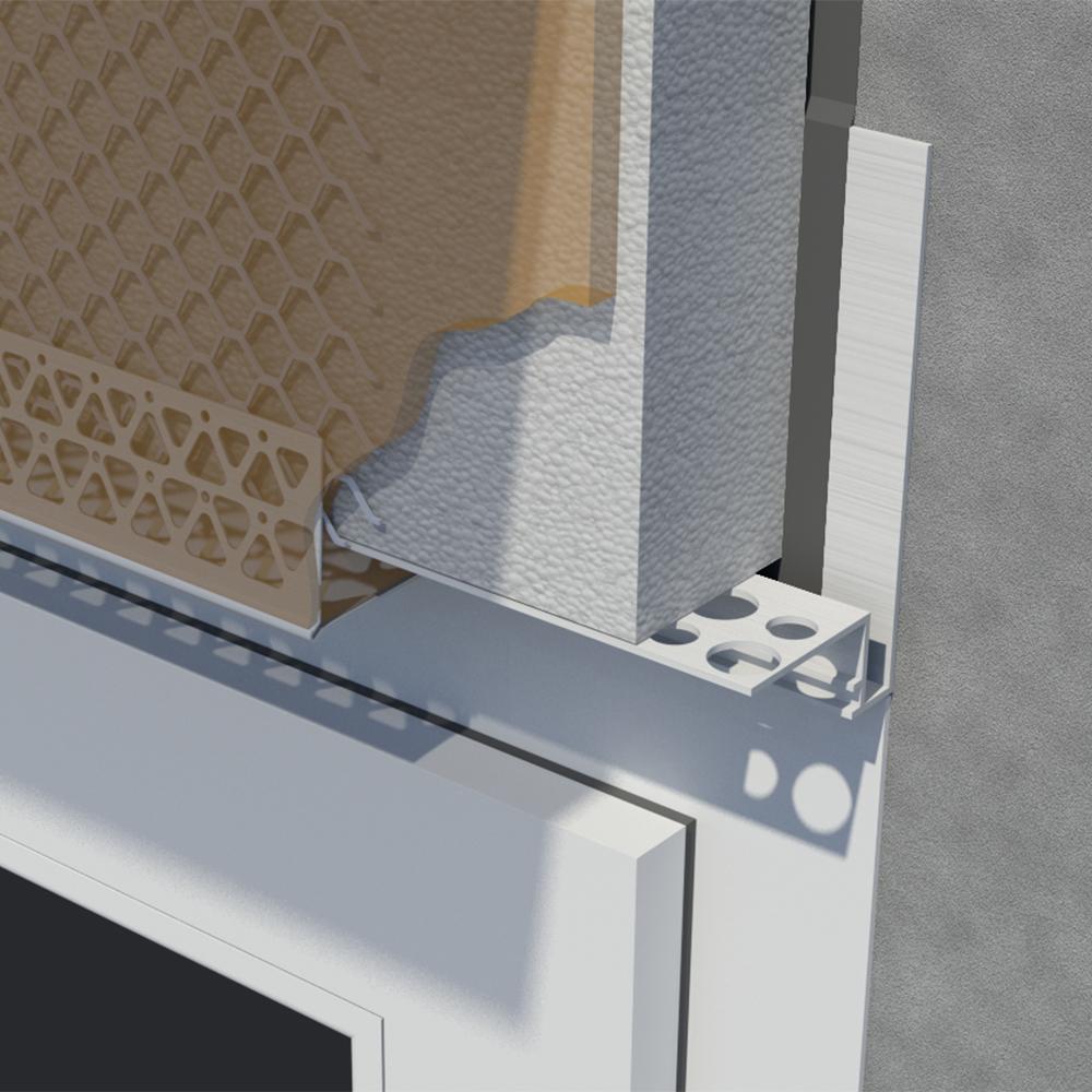 Designed to be used with #1 Corner Bead around windows and doors and at the foundation line to direct water drainage. Continuously insulated (CI) stucco assemblies with CI Weep Track have achieved the requirements of NFPA 285.