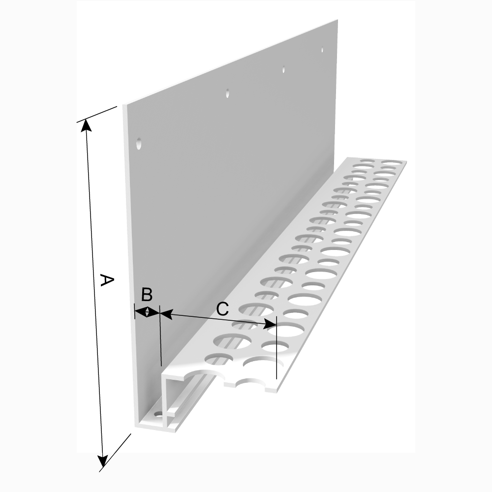 Product codeInsulation thicknessBack flange (A)Weep trough (B)Perforated flange (C)Pcs./Box