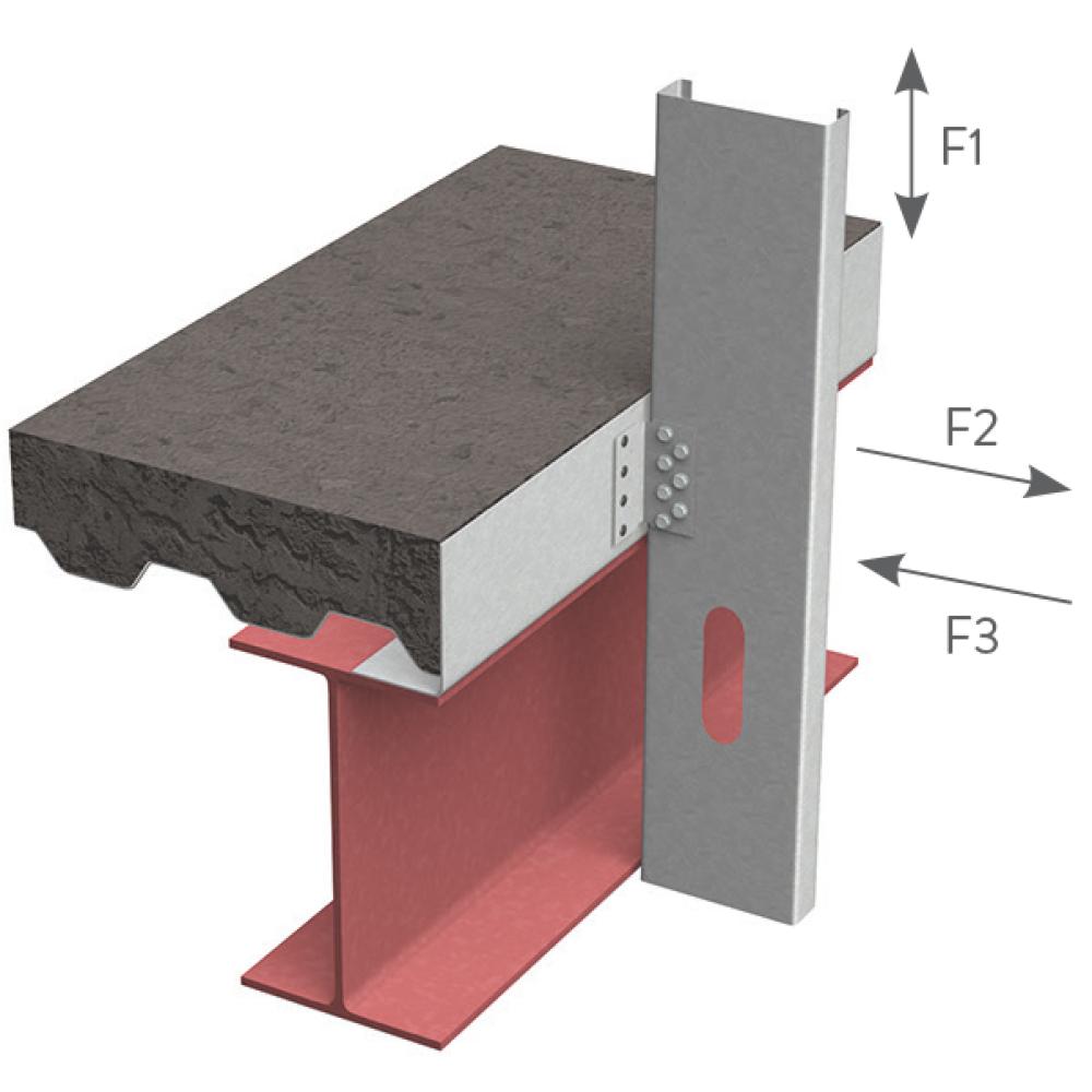 EasyClip S-Series support clips are attached to the cold-formed steel (CFS) framing members using #10 minimum self-drilling screws driven through the clip holes into the steel framing. When not filling all holes, install fasteners symmetrically starting at the top and bottom edges and move toward the center of the clip. Clip can also be welded to the CFS framing. Connections to the building frame can be made with powder-actuated fasteners, drill-in concrete anchors or welding. When using the tabular values for a welded clip, provide a full weld to the structure, top to bottom, along the outside of the clip. A 3/4" minimum weld on the outside edge of the 1-1/2" leg is also required to control warping or to hold the clip in place before final welding.