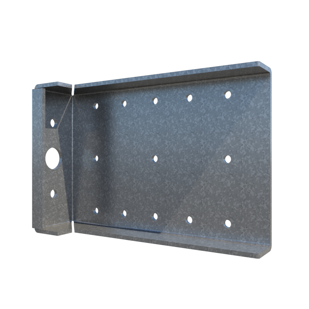 This clip is ideal for all medium and large standoff conditions and designed to resist horizontal and vertical loads. (1) 5/8" hole in the short leg of the clip allows for a 1/2" concrete anchor to be attached to the slab. (2) 3/8" holes allow 1/4" anchors.