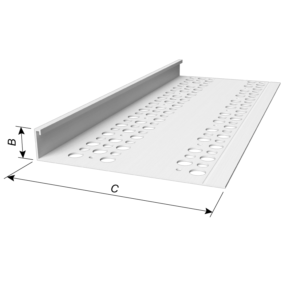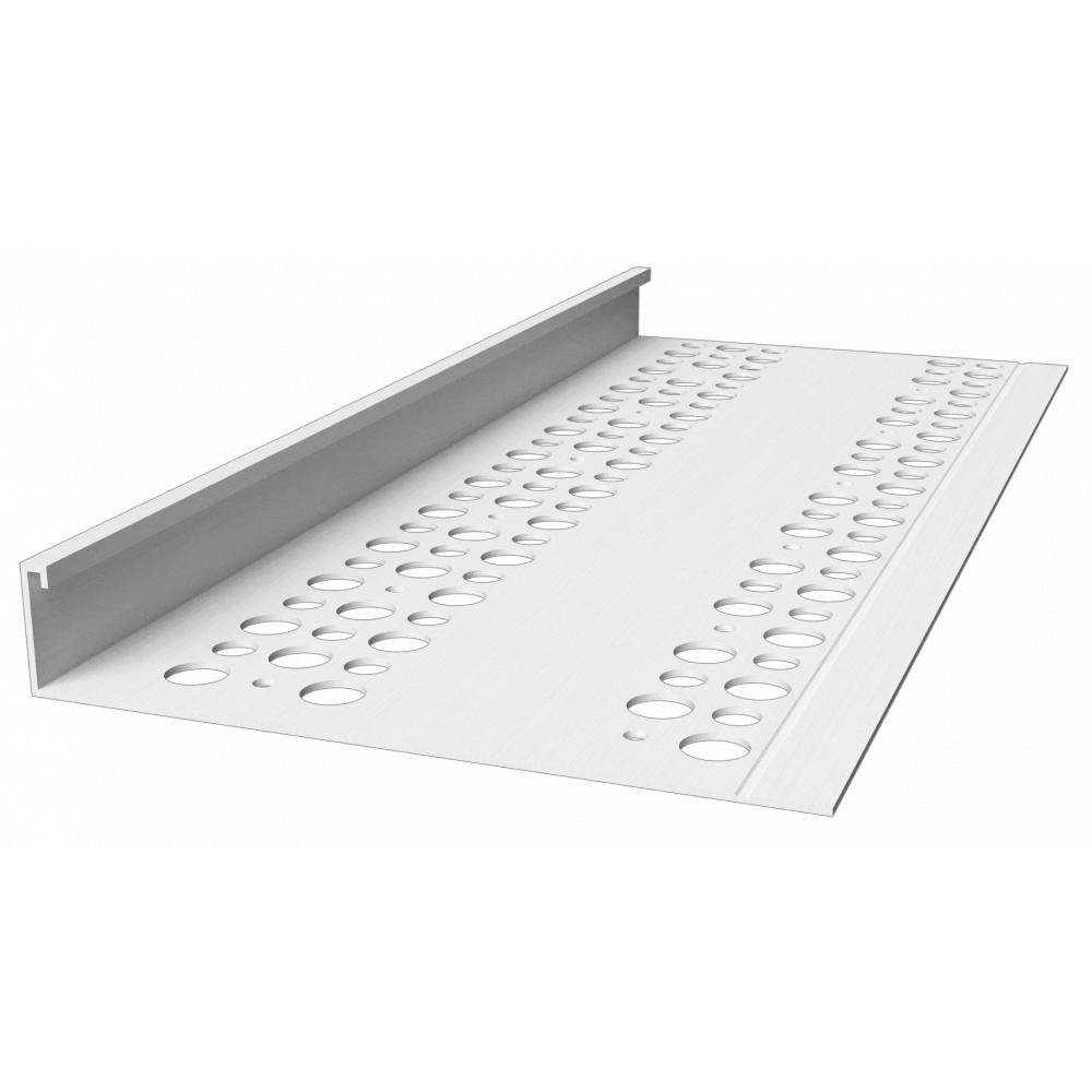 Terminates stucco and plaster against windows, doors and other dissimilar materials.