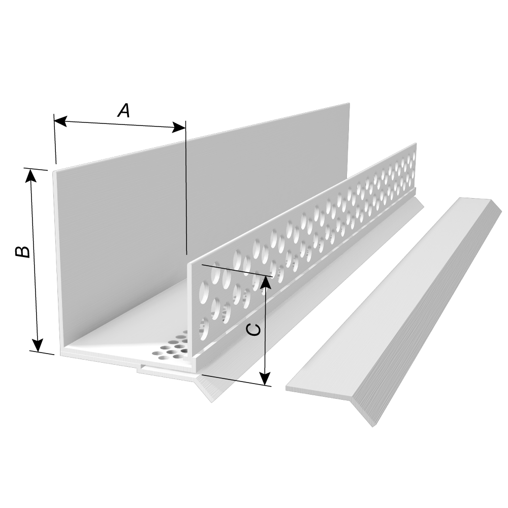 Base support starter strips and perimeter casing beads with front weep holes and a drip leg to move moisture away from opening headers. Supplied with a disposable protective strip to prevent clogging during base coat application.