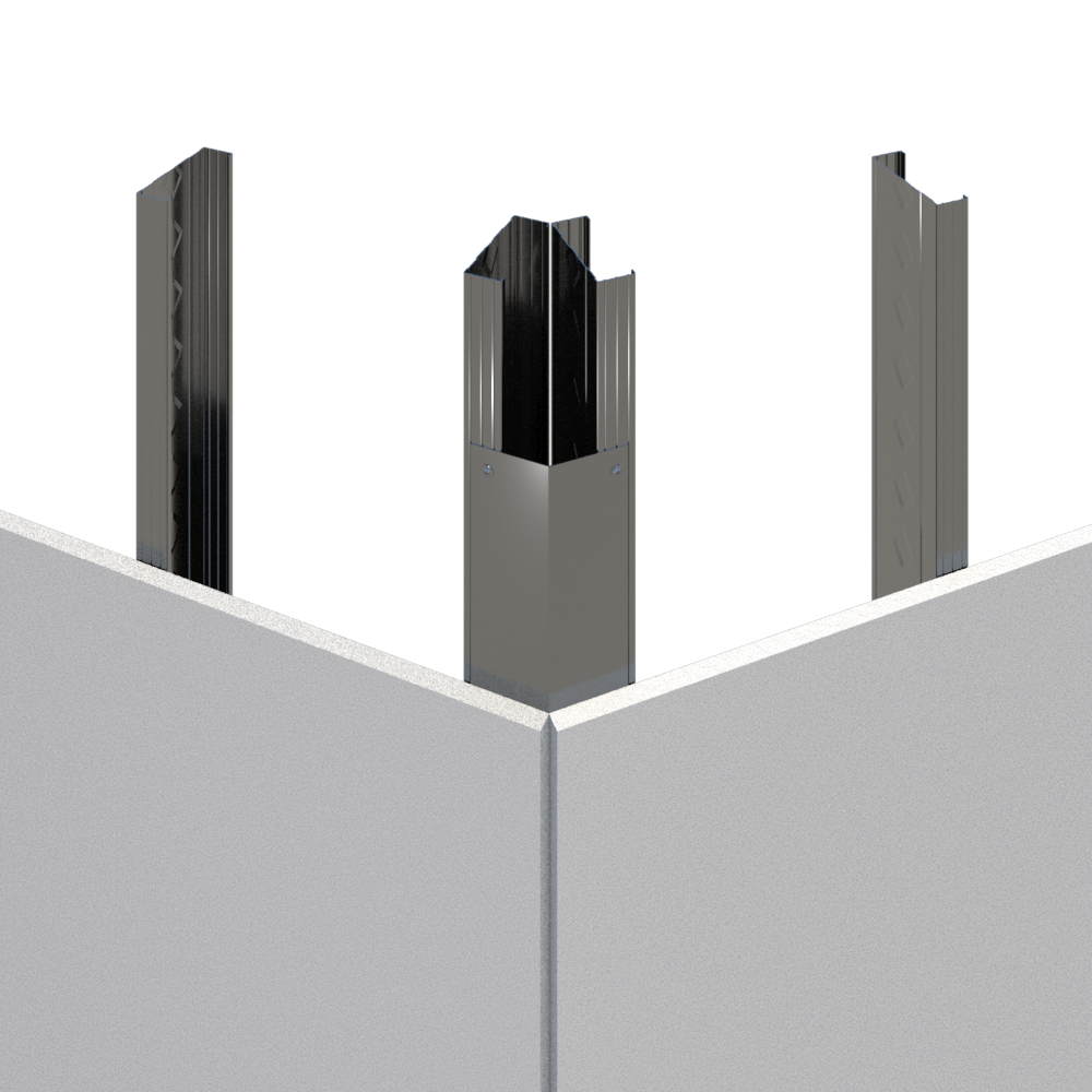 Non-structural corner angles used to connect, reinforce or secure metal stud framing in various drywall applications.