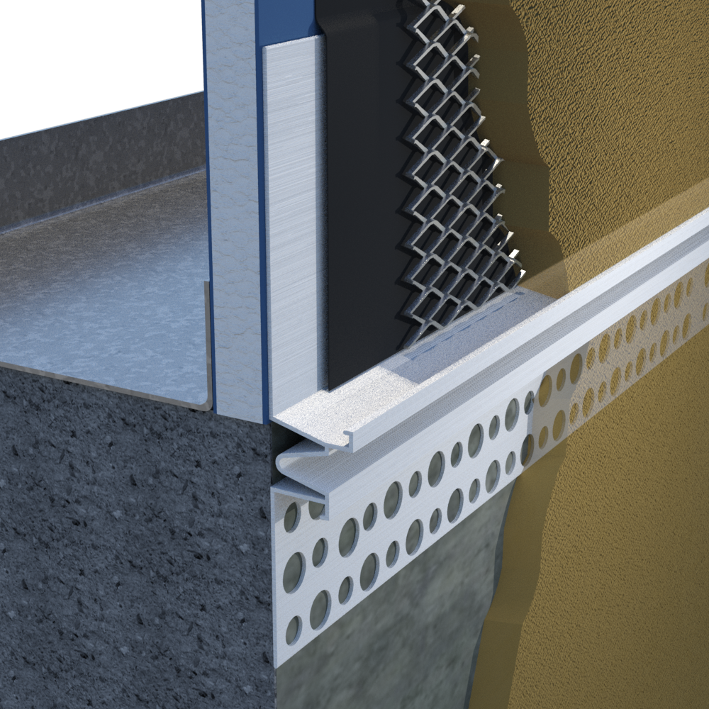 Designed to relieve stress and assist in controlling cracks in exterior wall finish.  The mid-wall screeds have a built-in control joint to accommodate expansion/contraction of the separate substrates.