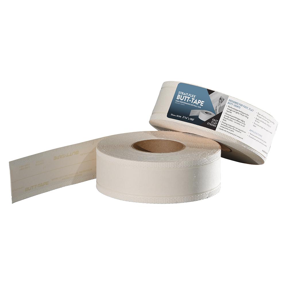 Butt-Tape is twice as fast as conventional tapes and two times stronger than paper or mesh tape.  No compound required over laminated area of tape - just skim coat edges. Apprentices and professional tapers can achieve the flattest butt-joints possible. Leaves butt-joints virtually non-noticable.