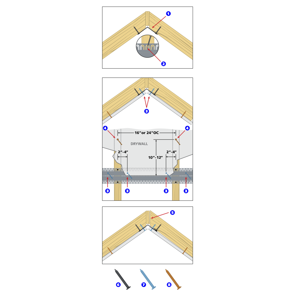 - Fasten X-Crack to ceiling trusses or conventional framing members before drywall installation.