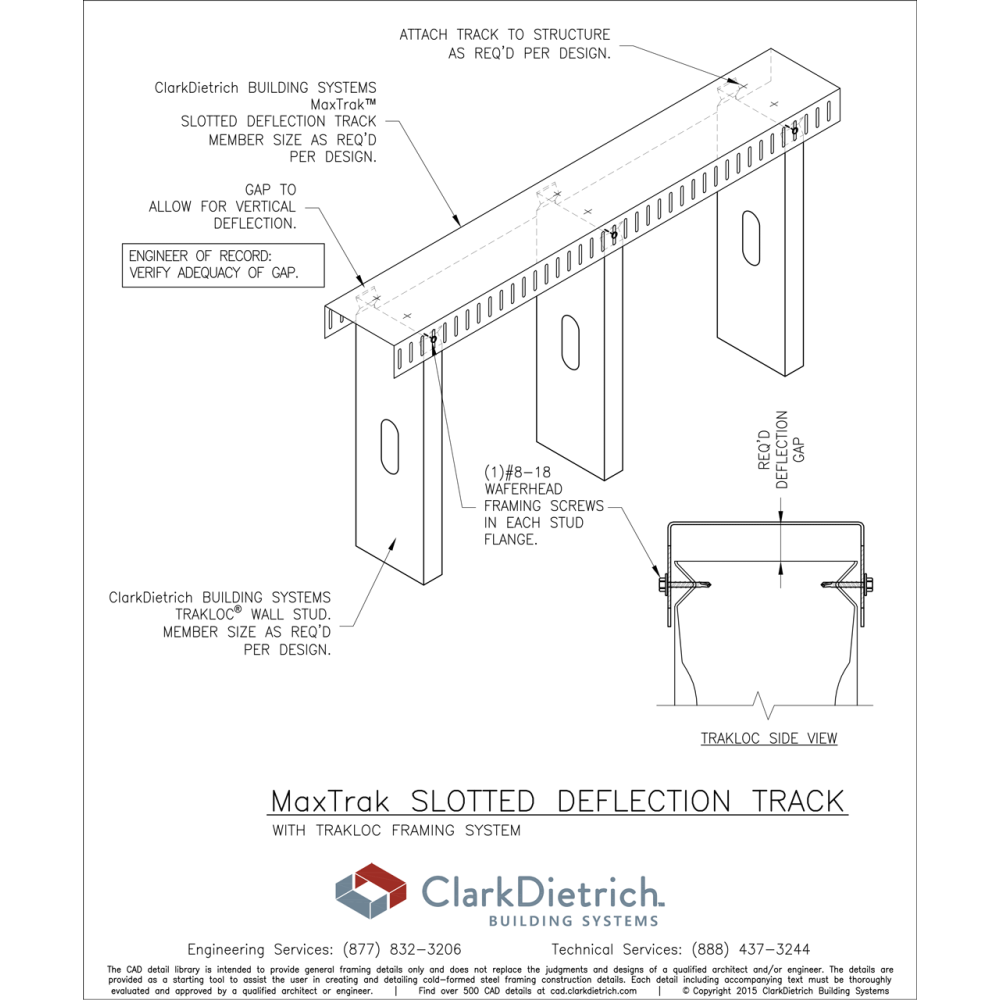 • Vertical deflection is accommodated by the telescoping TRAKLOC Deflection Stud (TLD), not the track.