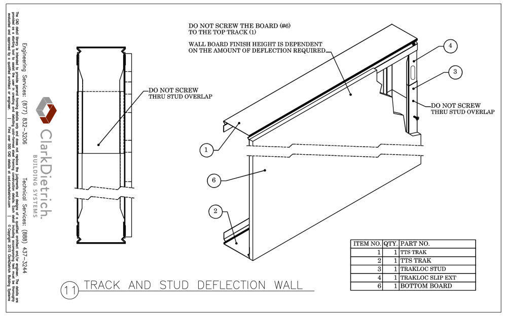 • TRAKLOC system allows for seismic and live-load vertical inter-floor deflection.