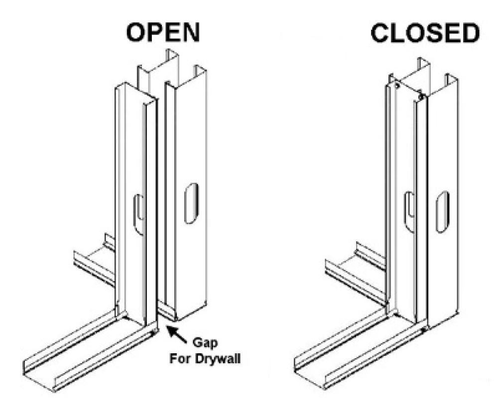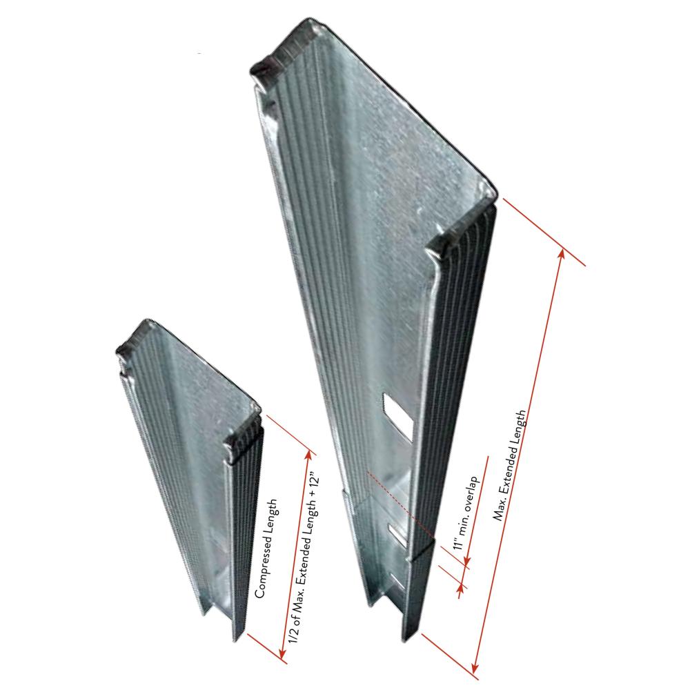 The TRAKLOC Elevator stud member arrives in a compressed position to accommodate stocking in a building elevator and then can be extended (telescoped) to the required length at point of installation. This reduces the cost of stocking long studs on floors accessible only by elevators and stairways.