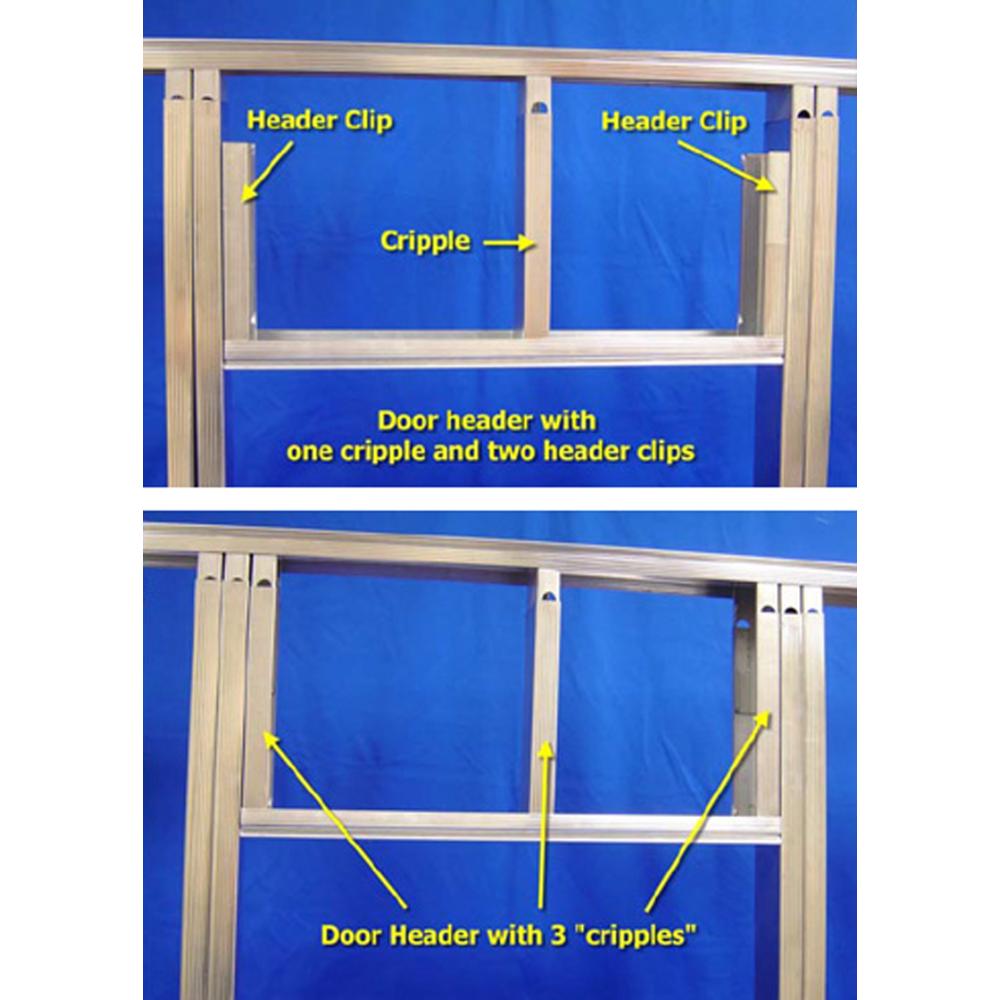 Using TRAKLOC Header Clips requires less material while using all TRAKLOC Cripple Studs will provide more structure to the opening. Either of which are acceptable, but check your plans for guidance.