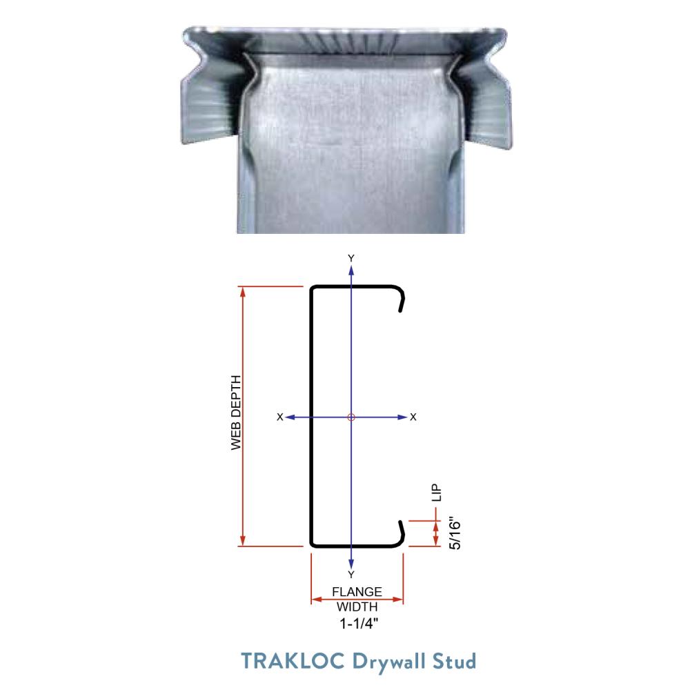 For product data sheets with section properties and limiting heights for all TRAKLOC Stud & Track profiles available, use the Launch SubmittalPro link found on the bottom of this page.