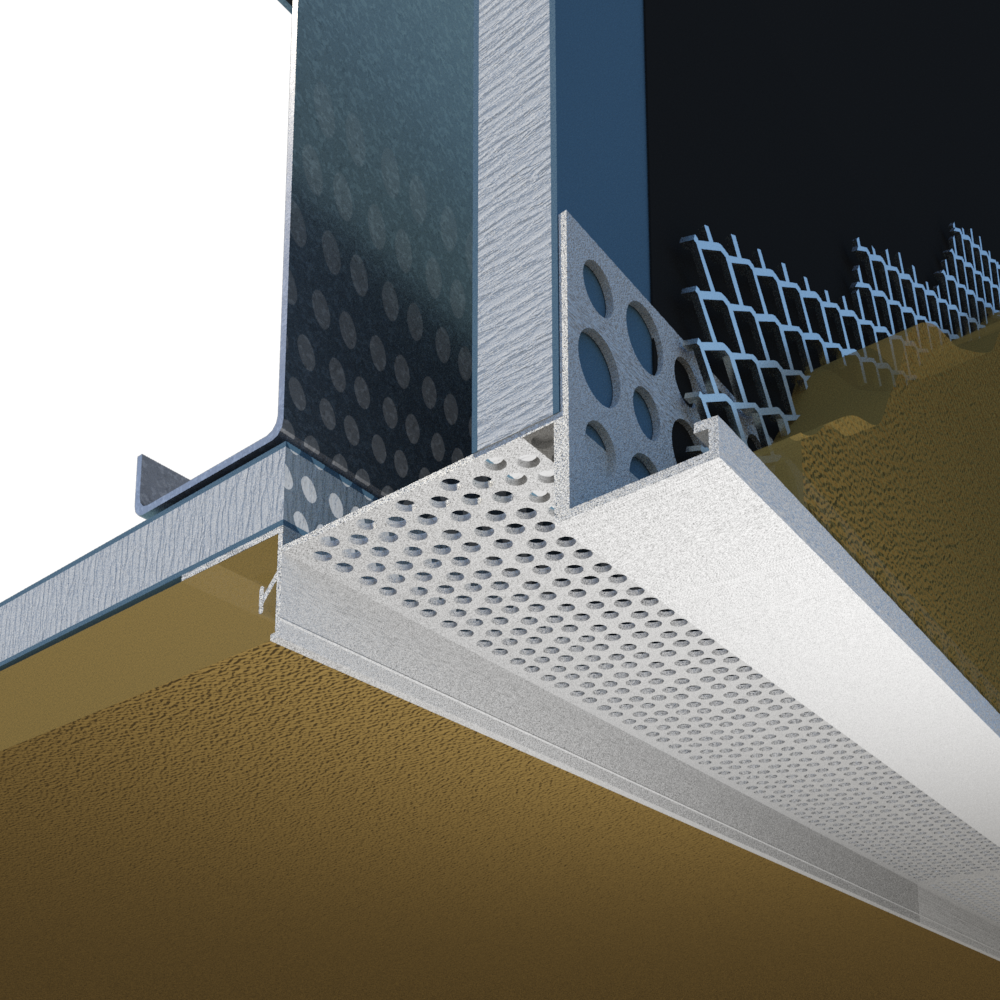Designed to address finishing the plaster to the vertical soffit area intersection